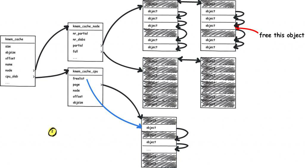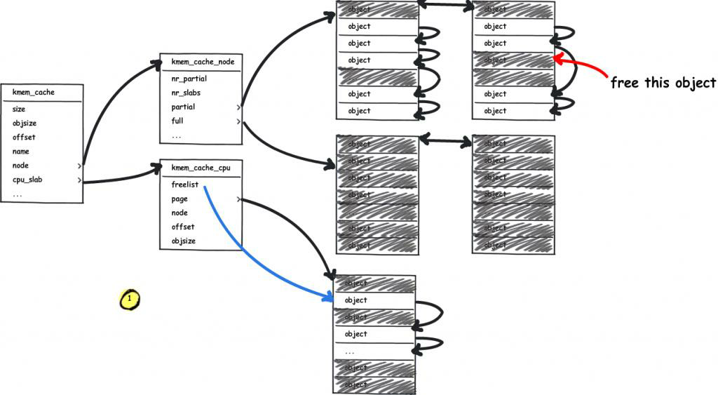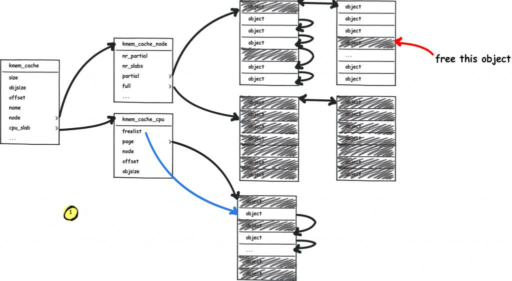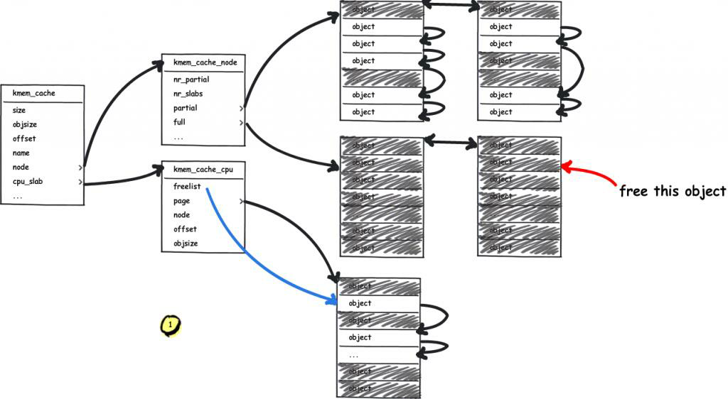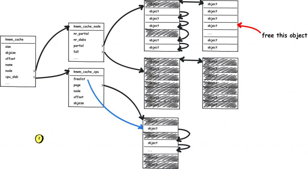 该object在释放后,slab中的object全部是空闲的,还需要把该slab释放掉